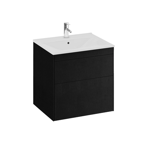 Det extra tunna tvättstället har en generös avställningsyta för tvålpump eller tandborsthållare. Stommen och lådfronten är tillverkad i fukttrög MDF för badrumsmiljö. Kommoden levereras med mjukstängande lådor för tyst stängning. Den medföljande lådinredningen ger dig möjlighet att förvara handdukar eller smink. Lådavdelaren gör att du enkelt kan sortera innehållet.