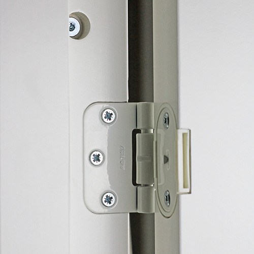Dörrens gångjärn är vita om du väljer en vit dörr. Svart och grå dörr har gråa gångjärn.