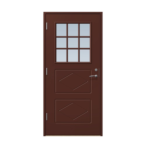 KULÖR Vattenbaserad målningsteknik. Vi rekommenderar inte ommålning av ytterdörren eftersom glaslist och dörr är i olika material och kan reagera olika på den färg som används. Observera att en ytterdörr i mörk kulör ska monteras skyddad från direkt starkt solljus och hög värme för att undvika skevhet och solblekning.