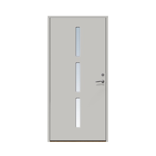 KULÖR Vattenbaserad målningsteknik. Vi rekommenderar inte ommålning av ytterdörren eftersom glaslist och dörr är i olika material och kan reagera olika på den färg som används. Observera att en ytterdörr i mörk kulör ska monteras skyddad från direkt starkt solljus och hög värme för att undvika skevhet och solblekning.
