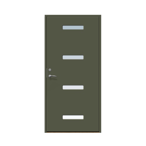 KULÖR Vattenbaserad målningsteknik. Vi rekommenderar inte ommålning av ytterdörren eftersom glaslist och dörr är i olika material och kan reagera olika på den färg som används. Observera att en ytterdörr i mörk kulör ska monteras skyddad från direkt starkt solljus och hög värme för att undvika skevhet och solblekning.