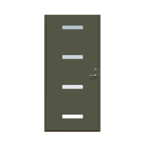 KULÖR Vattenbaserad målningsteknik. Vi rekommenderar inte ommålning av ytterdörren eftersom glaslist och dörr är i olika material och kan reagera olika på den färg som används. Observera att en ytterdörr i mörk kulör ska monteras skyddad från direkt starkt solljus och hög värme för att undvika skevhet och solblekning.