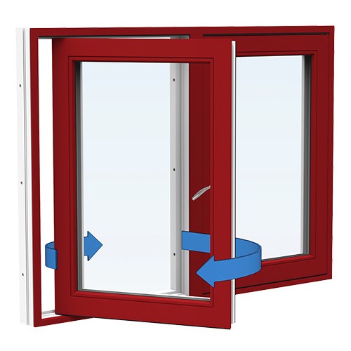 Energi aluminiumfönster med Sideswing-funktion har öppningsspärrar både i vädringsläge och i putsläge från modulbredd 6 och uppåt.