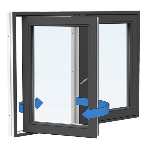 Energi Aluminium med sideswing är ett vänsterhängt fönster.