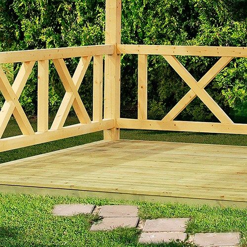 Golv finns att köpa till separat till storlekarna 9,0 och 9,9 m². Vid tillval av golv: Golv + golvreglar är impregnerade.