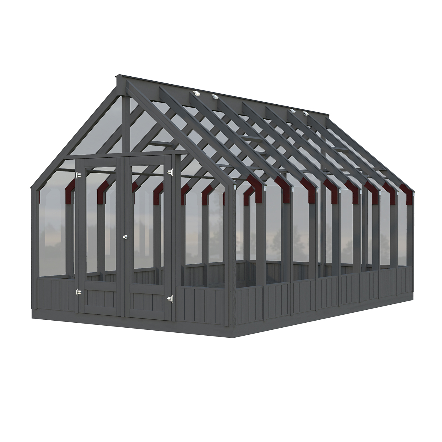 Både du och dina grönsaker kommer att älska det rustika träväxthuset Emilia. Det robusta träet i grå kulör, i kombination med takhöjden på nästan tre meter skapar en fantastisk känsla av rymd som är snudd på magisk.