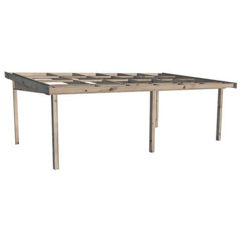Vi har många okapade uterumsstommar att välja mellan. De består av okapade delar i limträ och monteringsbeslag som kapas till önskade mått.