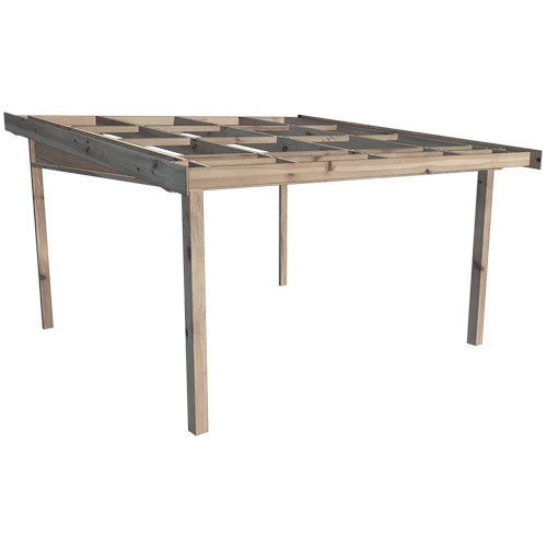 Vi har många okapade uterumsstommar att välja mellan. De består av okapade delar i limträ och monteringsbeslag som kapas till önskade mått.