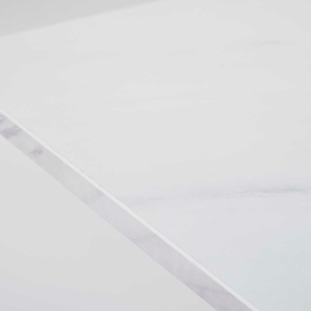 Bänkskivan är tillverkad av melaminbelagd MDF med ett slitstarkt och lättskött ytskikt. Den ljusa marmoreffekten skapar ett klassiskt och harmoniskt uttryck som passar lika bra i moderna som traditionella badrum.