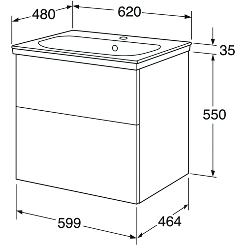 | Tvättställsskåp (Bredd/Djup/Höjd) | 599 x 464 x 550mm |