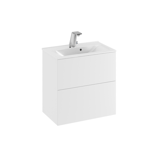 IDO Elegant Compact tvättställspaket med två mjukstängande lådor. Kommoden har ett grundare djup för att få plats i badrum med begränsat utrymme.