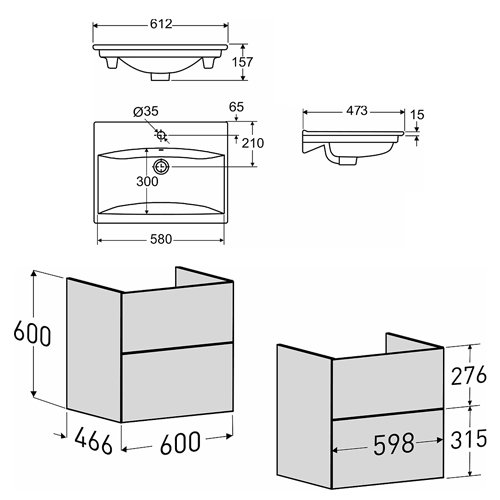 | Tvättställ (Bredd/Djup/Höjd) | 600 x 473 x 15 mm |