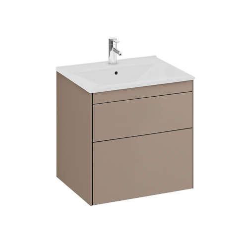 Det extra tunna tvättstället har en generös avställningsyta för tvålpump eller tandborsthållare. Stommen och lådfronten är tillverkad i fukttrög MDF för badrumsmiljö. Kommoden levereras med mjukstängande lådor för tyst stängning. Den medföljande lådinredningen ger dig möjlighet att förvara handdukar eller smink. Lådavdelaren gör att du enkelt kan sortera innehållet.
