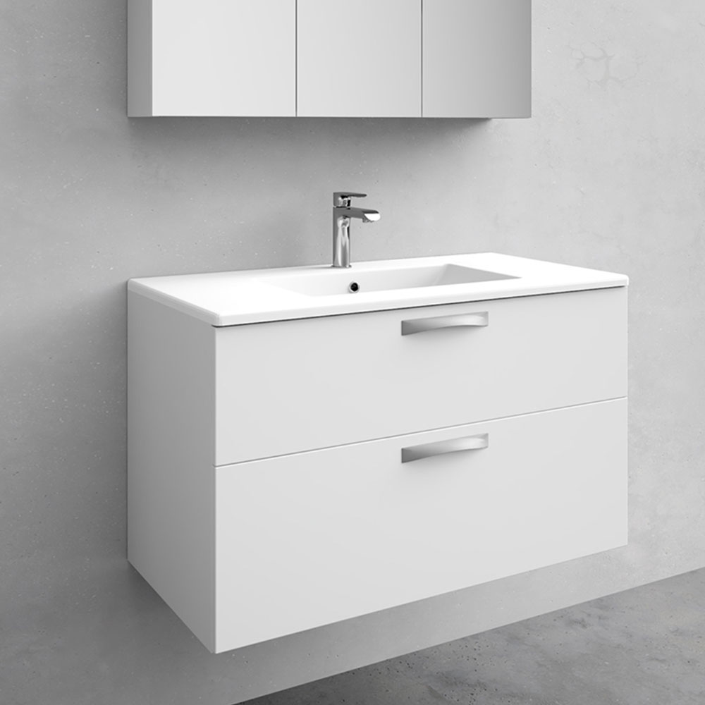 City tvättställsskåp har mjukstängande lådor med fullutdrag. Justerbara upphängningsbeslag för enkel installation och justering. Lådinredning och uttagbar lådmatta ingår.