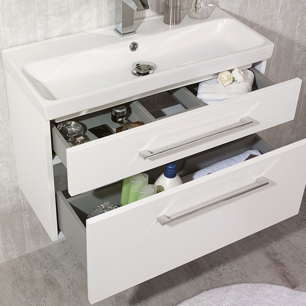 Rabatten dras i kassan. Gäller till och med 15 december.Tvättställ i porslin med överfyllnadsskydd. Självstängande och dämpande lådskenor. Fack för småförvaring i övre låda. Levereras utan bottenventil och vattenlås. Levereras monterad. Borrmarkeringar handtag: C-C 256mm. Finns i flera färger och bredder.
