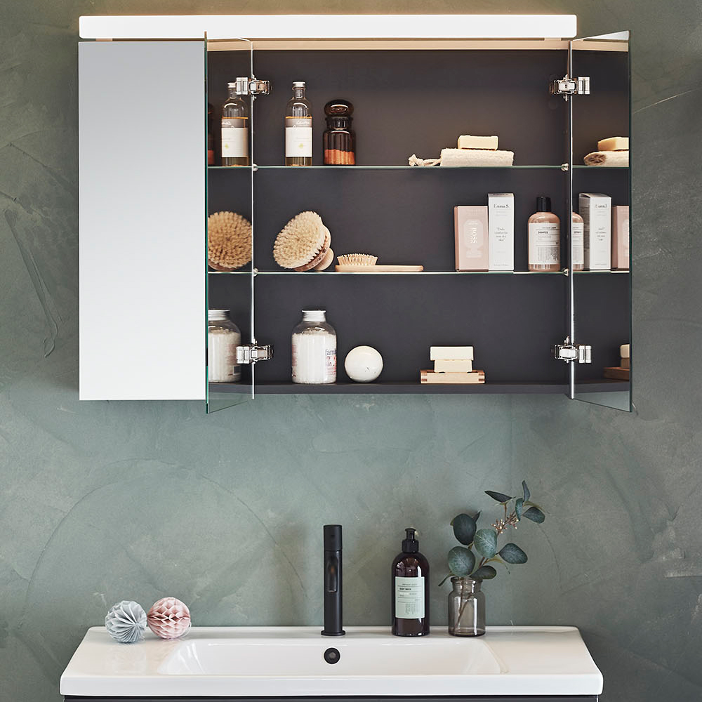 Rengör med fuktad trasa, använd milda rengöringsmedel vid behov. Undvik medel med slipande effekt, syror och ammoniak. Våra möbler är utrustade med vattenavstötande material, dock tål de inte direkt vattenkontakt under en längre tid. Vid montering nära badkar eller dusch bör badkarsvägg, duschvägg eller annan avskärmning användas.