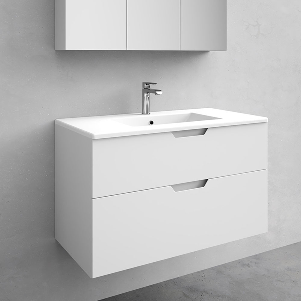 Rengör med fuktad trasa, använd milda rengöringsmedel vid behov. Undvik medel med slipande effekt, syror och ammoniak. Våra möbler är utrustade med vattenavstötande material, dock tål de inte direkt vattenkontakt under en längre tid. Vid montering nära badkar eller dusch bör badkarsvägg, duschvägg eller annan avskärmning användas.