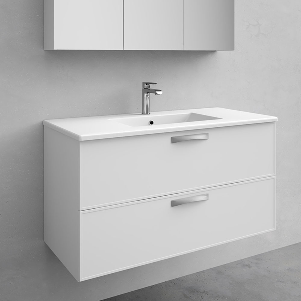 Klassisk formgivning med en touch av Art déco möter framtidens teknik. Här har vi lagt en extra tanke på detaljerna och formgivit en möbel med en tunn och elegant ram på lådfronterna, som sätter stilen till ditt badrum. Vogue finns i flera bredder och färger.