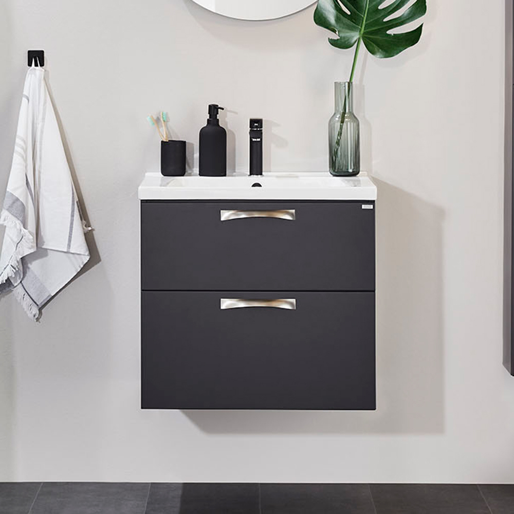 Tvättställsskåpet City har en modern och funktionell formgivning som passar lika bra i det lilla badrummet som i det större. Möbeln finns i flera bredder och kulörer, vilket gör det enkelt att skapa en personlig helhet. De mjukstängande lådorna med fullutdrag ger en tyst och bekväm användning, och justerbara upphängningsbeslag gör monteringen smidig. Skåpet levereras färdigmonterat med lådinredning och uttagbar lådmatta.