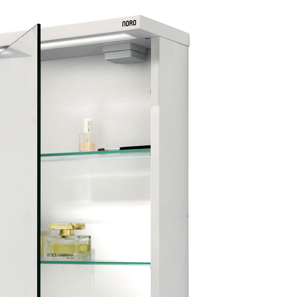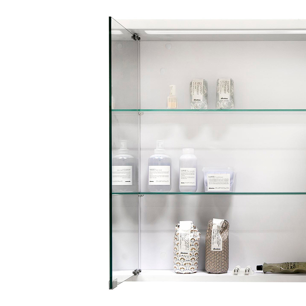 Spegelskåp Alva i vit matt finish kombinerar modern design med praktiska funktioner. Det varmvita ljuset på 3000K ger en behaglig stämning i badrummet, samtidigt som du får bra ljus för vardagens rutiner. Dörrarna öppnas enkelt med push-open-funktion, och bakom spegelglaset finns två justerbara hyllor i klarglas som gör det lätt att hålla ordning på dina badrumsartiklar.