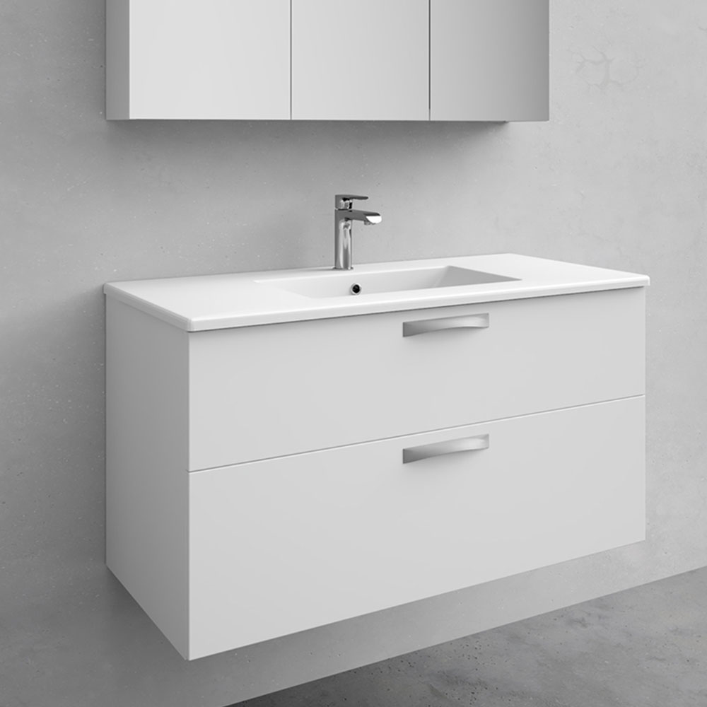 Rengör med fuktad trasa, använd milda rengöringsmedel vid behov. Undvik medel med slipande effekt, syror och ammoniak. Våra möbler är utrustade med vattenavstötande material, dock tål de inte direkt vattenkontakt under en längre tid. Vid montering nära badkar eller dusch bör badkarsvägg, duschvägg eller annan avskärmning användas.