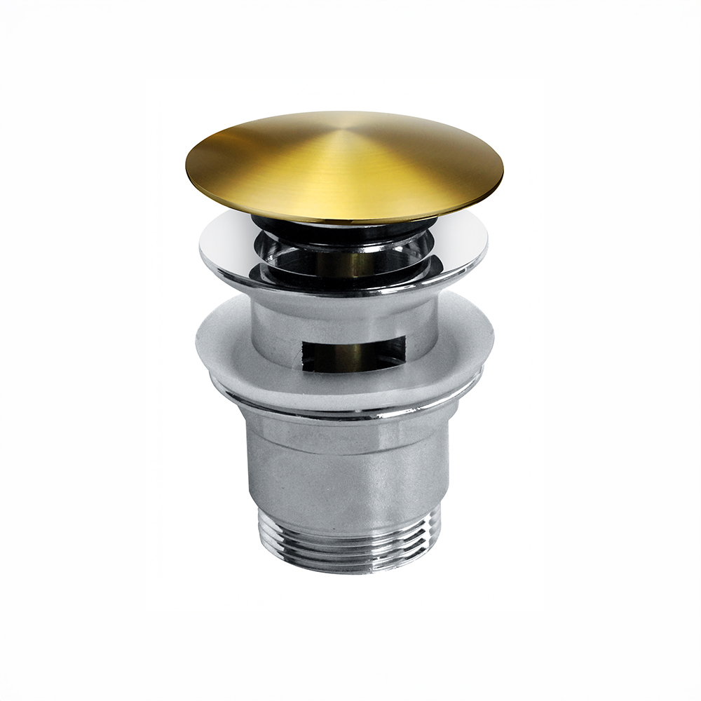 Denna bottenventil är tillverkad i mässing med en slitstark yta som behåller sin vackra färg över tid. Ventilen har ett fjäderbelastat lock med enkel push-funktion för att öppna och stänga vattenflödet. Anpassad för tvättställ med bräddavlopp.