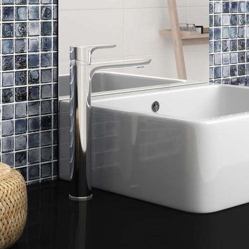 Gustavsberg Estetic hög modell är en förhöjd tvättställsblandare som passar både kök och badrum.