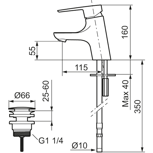 Finns att köpa med lyftventil, push down-ventil, silpluggsventil eller utan bottenventil.