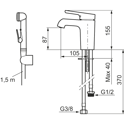 | Dimension kopplingsrör | Anslutning, 3/8 |