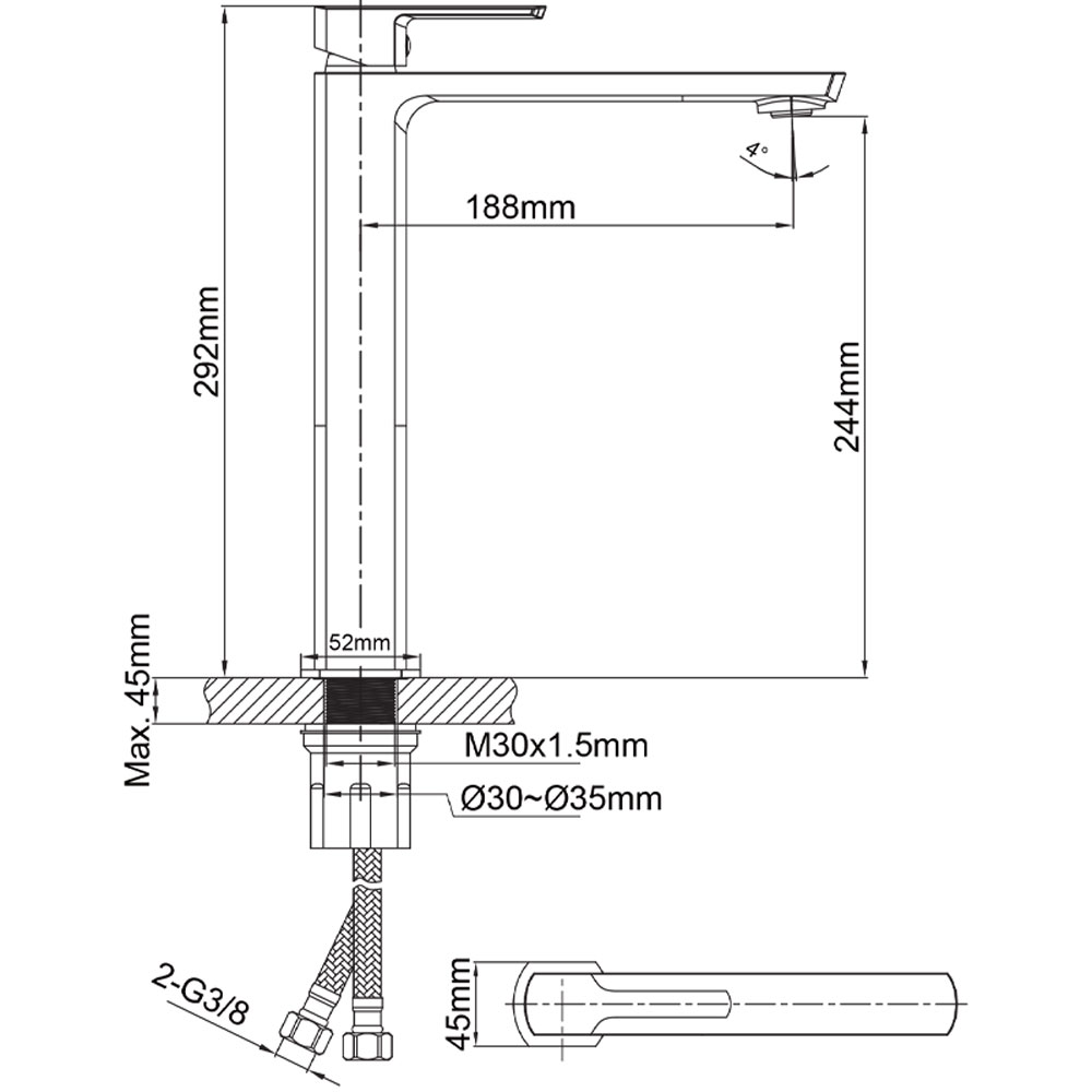 | Hålmått | Ø 30-35 mm |