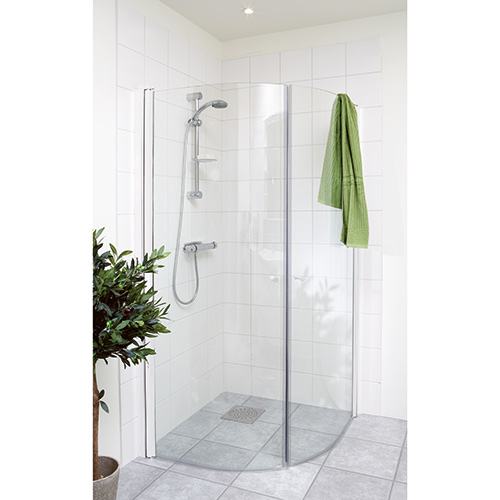 Lyftgångjärnen på Cosmos duschhörna gör att man kan öppna dörrarna både inåt och utåt i 90° vinkel och de kan därför enkelt fällas in mot väggen när den inte används.