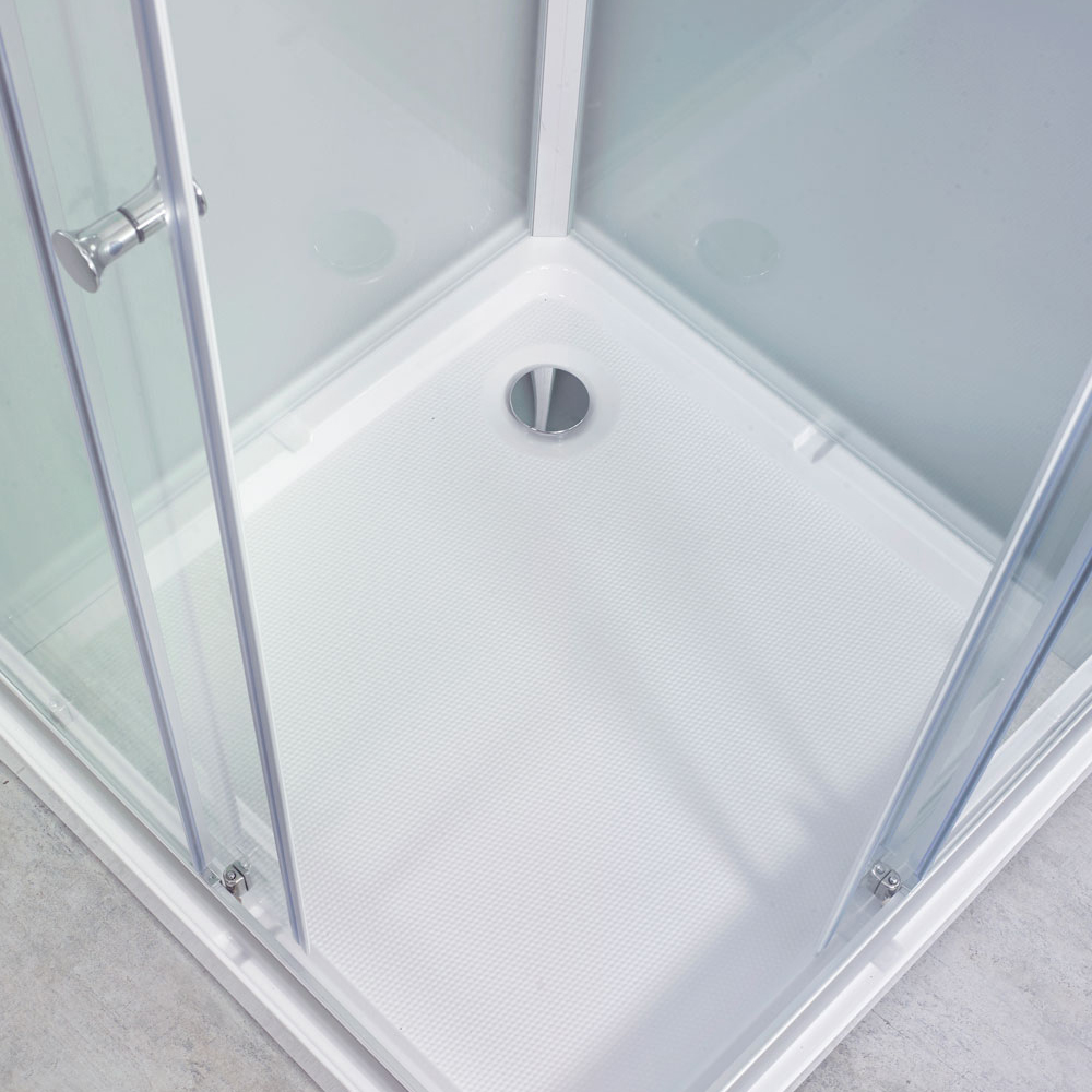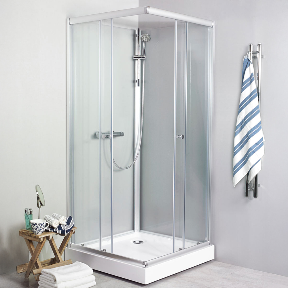 Levereras med 3-funktions duschset. Magnetfunktion vid stängning. Fjäderbelastade hjul med kullager. Anpassad för blandare cc 150 och 160 mm för kabingenomföring ½. Monteringen görs på höger eller vänster sida på 80x80 och 90x90 medan 70x90 alltid har blandaren på 70 cm sidan. 5 mm säkerhetsglas. Aluminiumprofil. Kar i glasfiberarmerad akryl. Bakväggar i glas med diskret struktur, döljer bakomliggande rör.