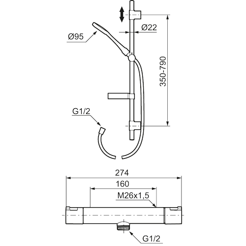 Duschblandaren är utrustad med säkerhetsspärr vid 38 och 42 grader för att förhindra att vattnet blir för hett under användning.