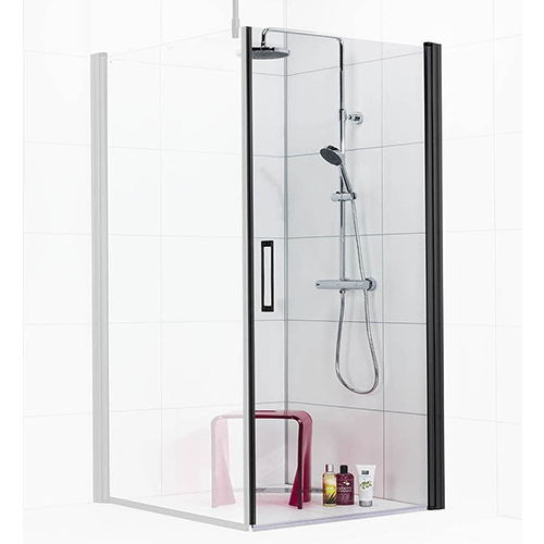 Duschdörren består av 8 mm/6 mm härdat säkerhetsglas med magnetstängning. Lyftgångjärn som lyfter 5 mm. Handtag ingår. Duschdörr ska kombineras med Frost Duschvägg.