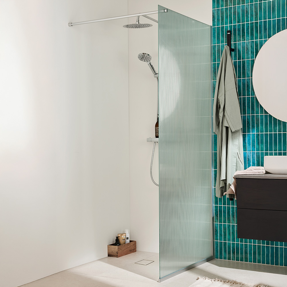 Elegant duschvägg i räfflat säkerhetsglas som ger badrummet en modern känsla. Finns i både 900 mm och 1150 mm för att passa olika behov.