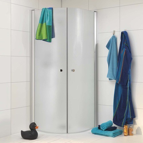 Lyftgångjärnen på Marin duschhörna gör att man kan öppna dörrarna både inåt och utåt i 90° vinkel och de kan därför enkelt fällas in mot väggen när den inte används.