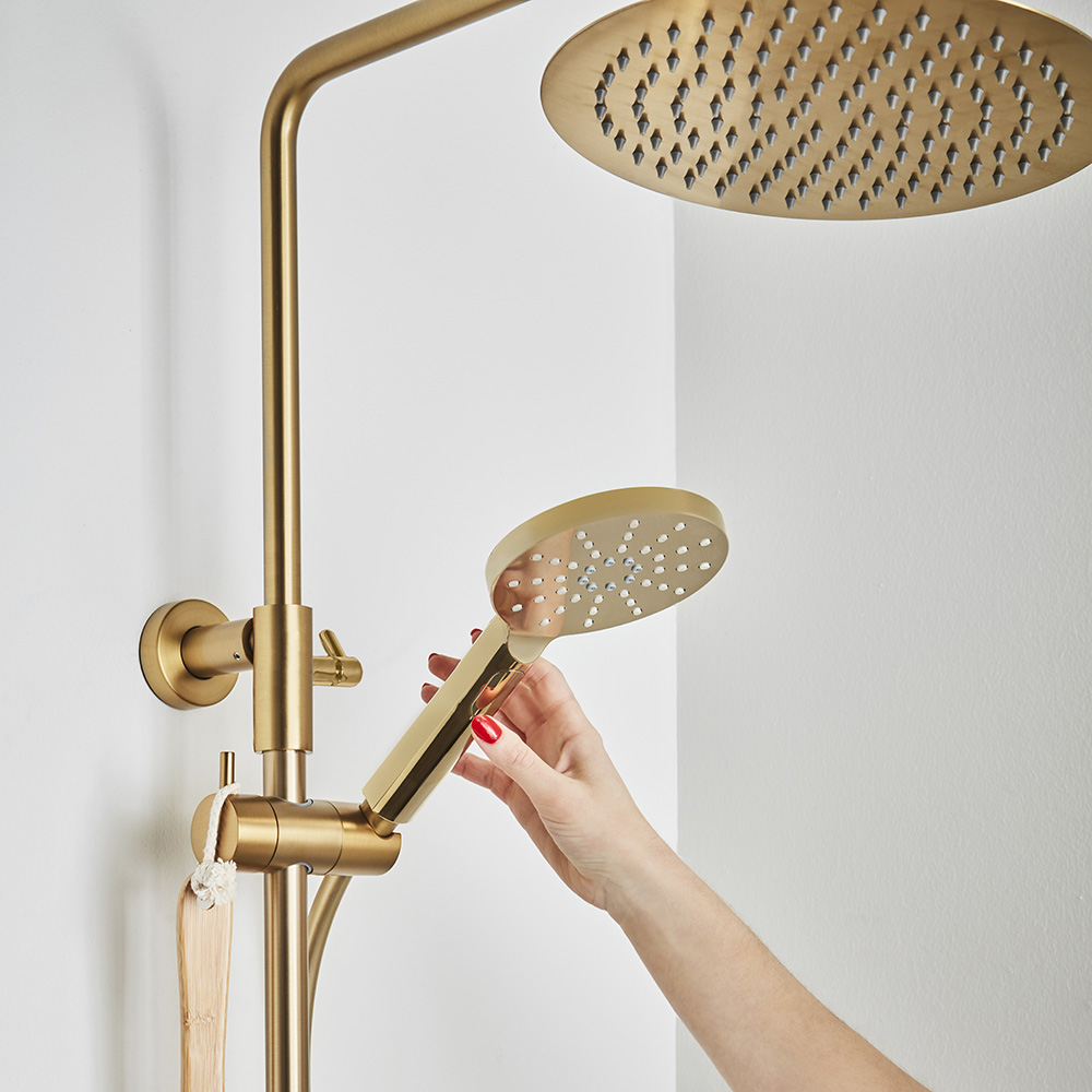 Elegant takdusch i mässing med flera smarta funktioner.