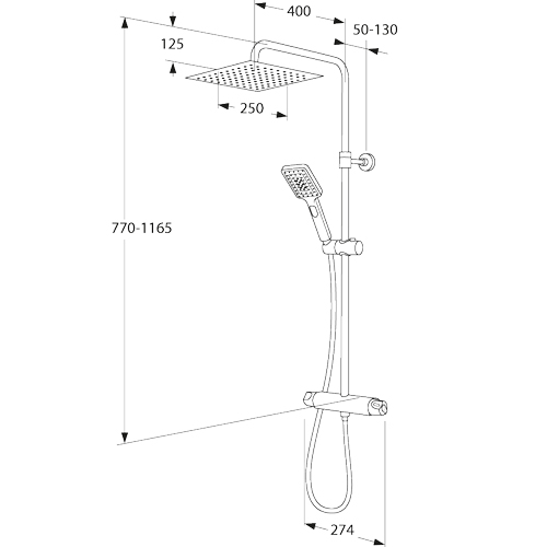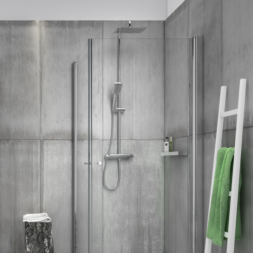 Komplett takduschset från Gustavsberg med en kvadratisk och supertunn taksil i måtten 250x250 mm.