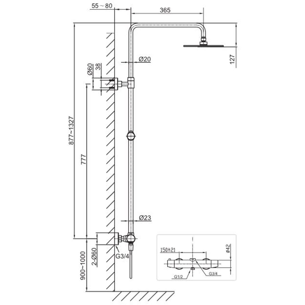 Rabatten dras i kassan. Gäller till och med 15 december.Takdusch med termostatblandare i kromade mässingrör. Duschhuvudet är 250 mm i diameter och i rostfritt stål. Enkelt att reglera mellan takdusch och handdusch genom att vrida på termostatblandaren. cc 150mm med excentrar för cc 160mm medföljer. Antiheat-system som förhindrar skållning.
