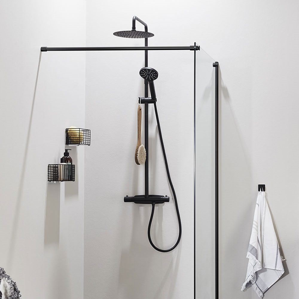 Takdusch i rostfritt stål med termostatblandare i mässing. Denna modell kan du välja duschhuvud från 200, 250 eller 300 mm i diameter samt kulör. Det är enkelt att reglera mellan takdusch och handdusch genom att vrida på termostatblandaren. Teleskopsfunktion. Antiheat-system som förhindrar skållning och förhindrar att du bränner dig. Handdusch med två funktioner. CC 150mm med excentrar för CC 160mm medföljer.