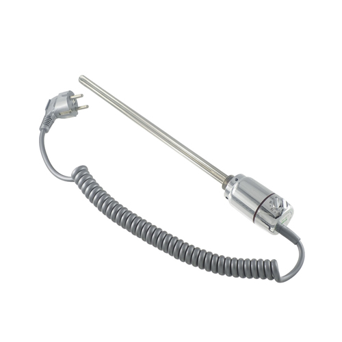 Elpatron med sladd och stickkontakt. Reglerbar termostat i fem steg mellan 30 och 60 grader. Timerfunktion två timmar. Enkel för alla att använda. Automatisk frostvakt. Inbyggt skydd mot överhettning. IPX5.