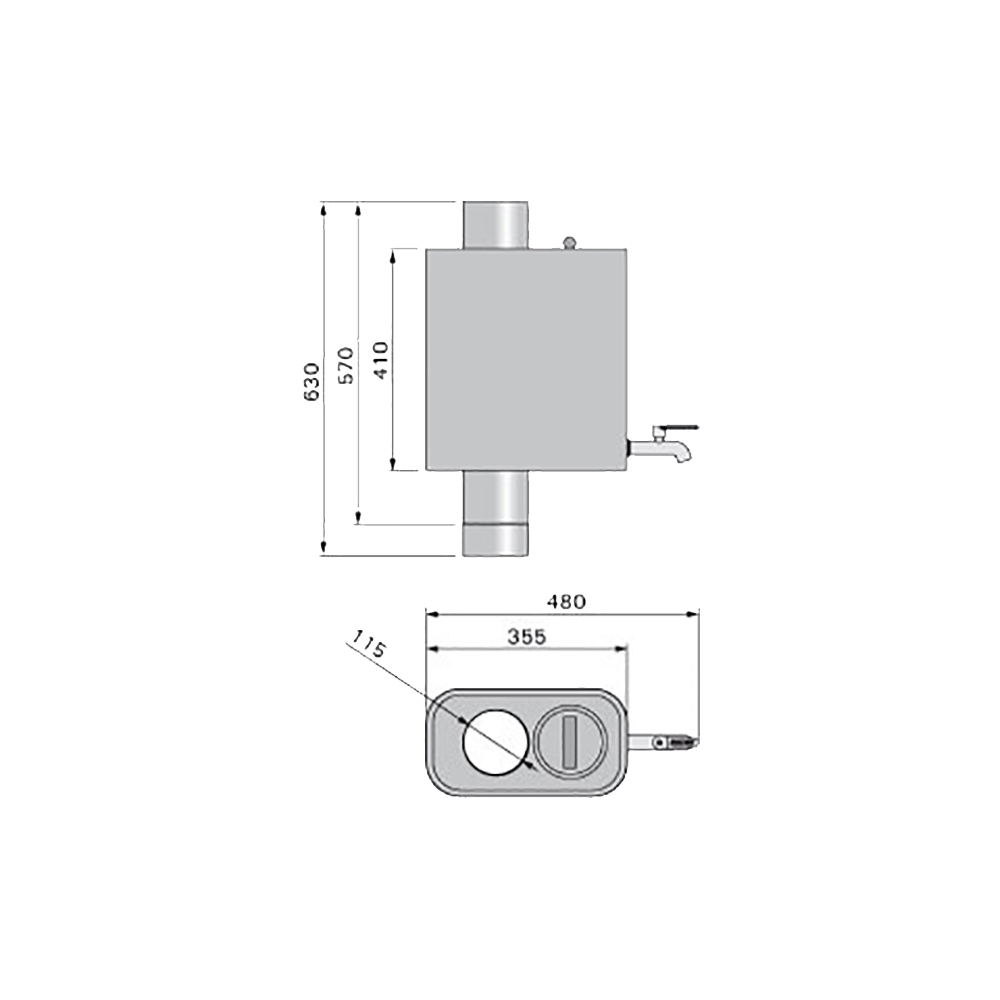 Skorstensmonterade vattenvärmare som monteras direkt på bastuugnen och rymmer 22 liter vatten.
