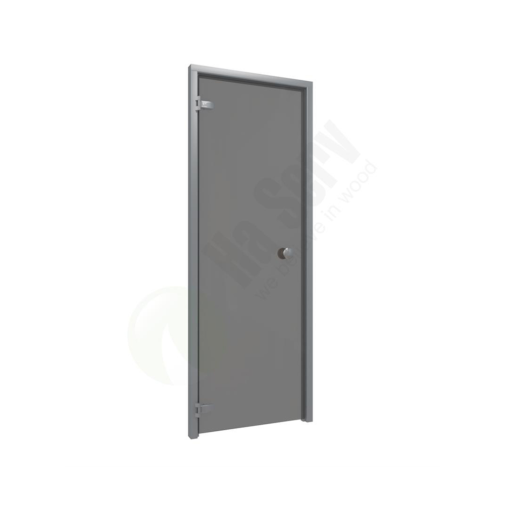 För dig som inte vill ha en karm i trä till din bastudörr så finns denna dörr med en tålig aluminiumkarm.