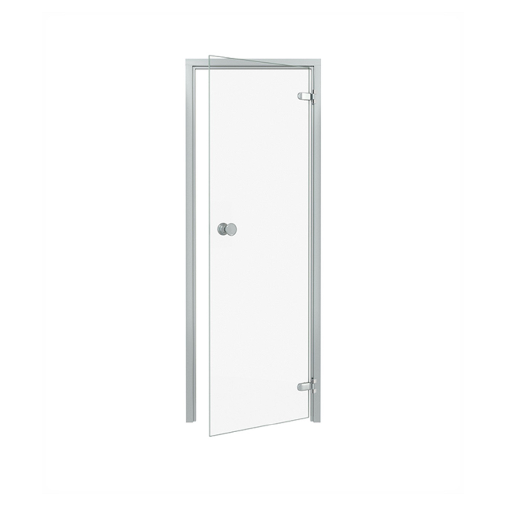För dig som inte vill ha en karm i trä till din bastudörr så finns denna dörr med en tålig aluminiumkarm.