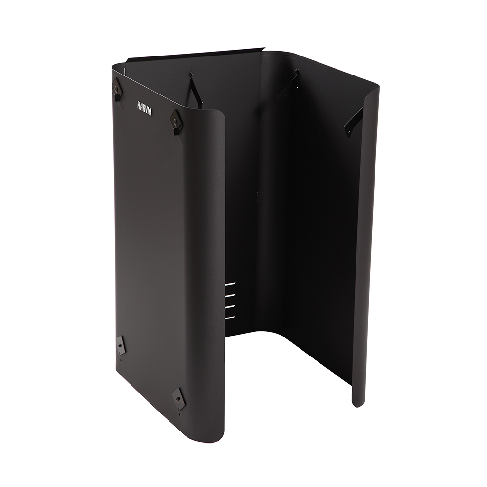 Skyddsväggen minskar säkerhetsavståndet till brännbara material och i praktiken ryms då bastuugnen i ett mindre utrymme. Skyddsväggen fästs direkt på ugnen och den följer ugnens form vilket ger ett estetiskt tilltalande utseende. Eftersom denna skyddsvägg designats specifikt för varje ugnsmodell uppstår inga kompromisser i design eller säkerhet.