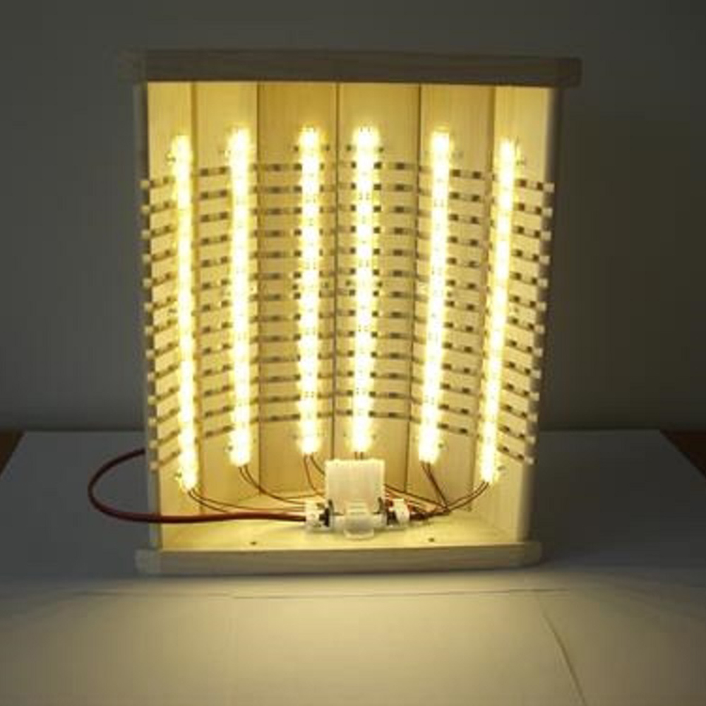 Lampan har 6 st led-stripes med dimmer vilket gör den mycket energieffektiv. Den passar på en rak vägg och har en tillhörande kabel på 4,5 m.