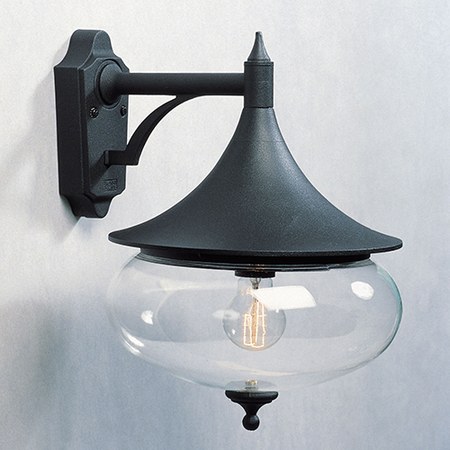 Vägglykta från Konstsmide med en vacker droppformad armatur. Stommen är av gjuten aluminium och kupan av transparent glas.