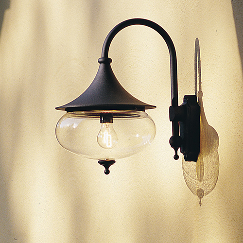 Vägglykta från Konstsmide med en vacker droppformad armatur. Stommen är av gjuten aluminium och kupan av transparent glas.