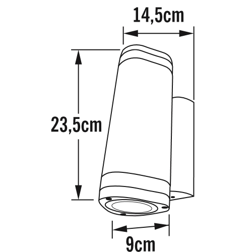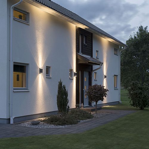 Vägglyktan har en stram, modern form som framför allt lämpar sig på hus med en modernare arkitektur. Armaturen ger ljus både nedåt och uppåt.
