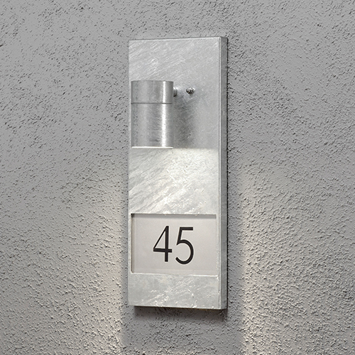 Vägglampa från Konstsmide med plats för tre siffror (ingår). Perfekt lösning för fasaden vid entrédörren.
